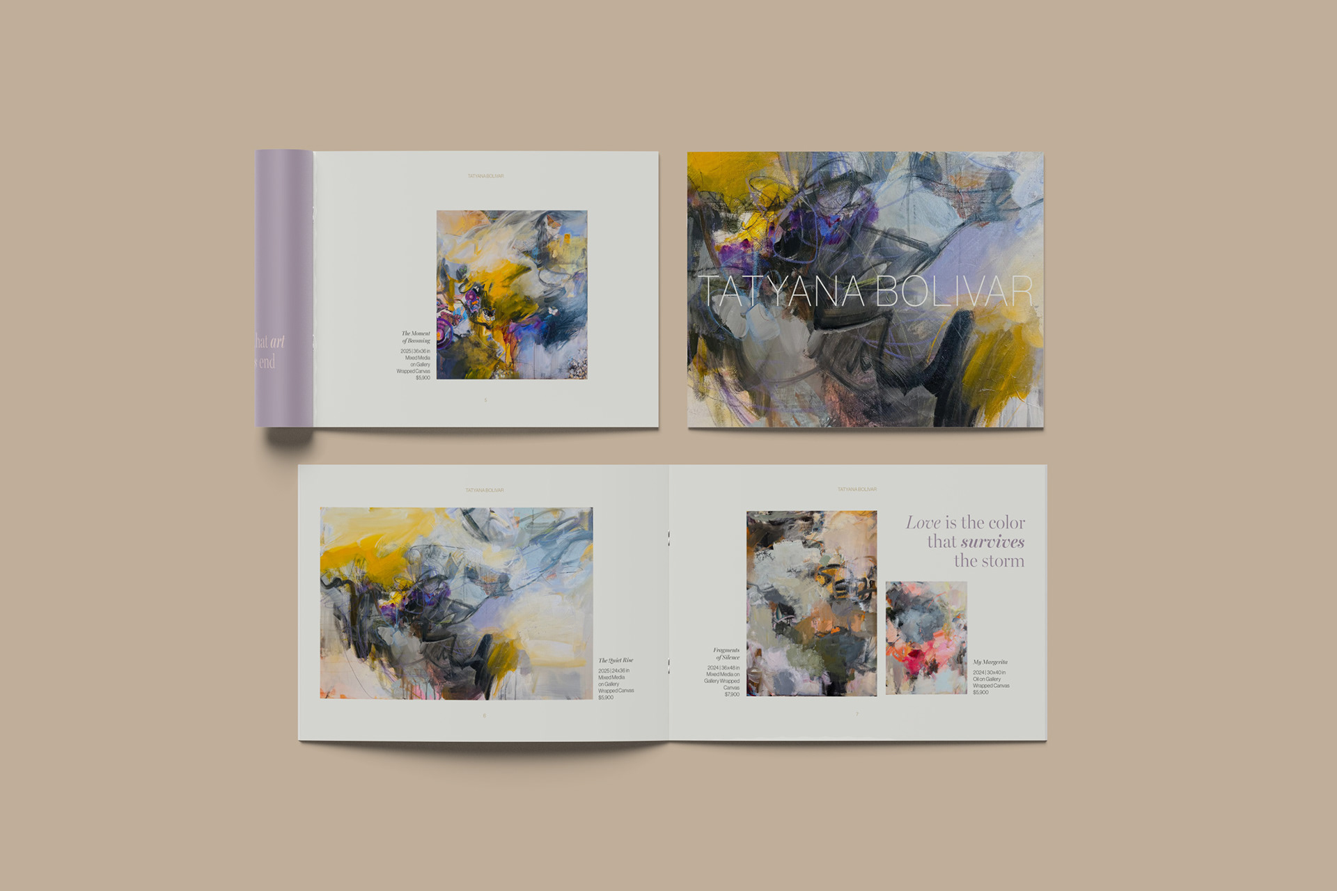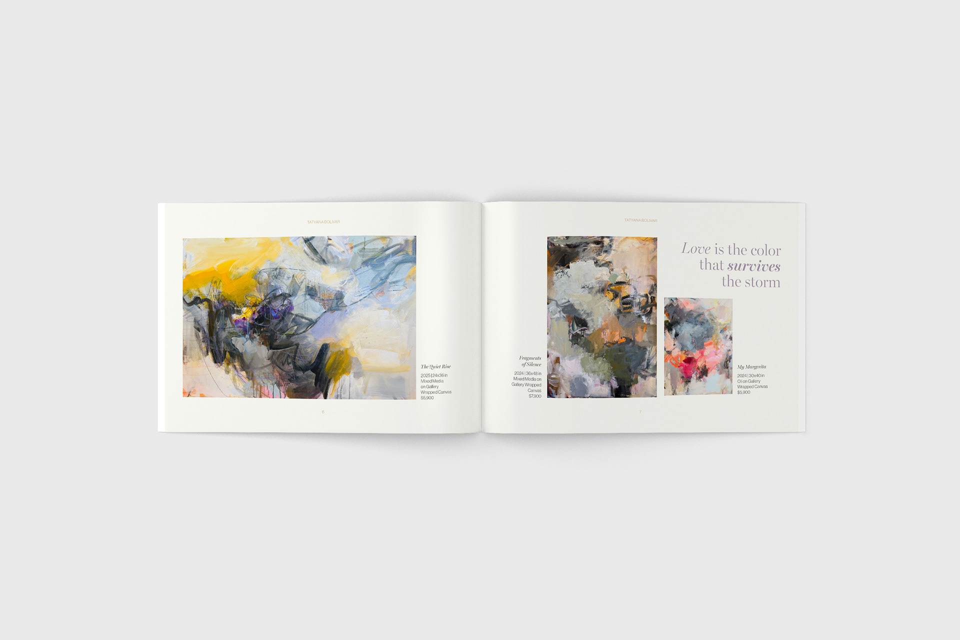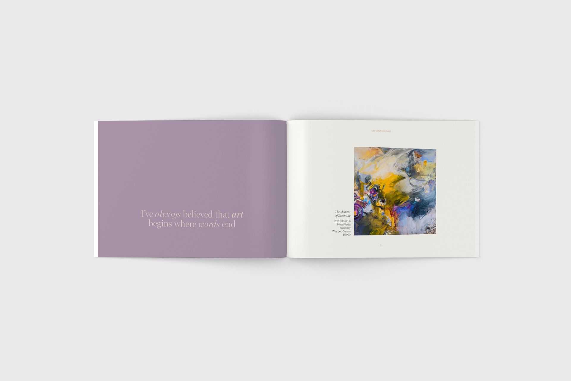 Developed the complete editorial graphic system for an art catalog, defining visual language, color palette, typography, hierarchy, and graphic elements, with a focus on presenting artwork for galleries and interior design clients.